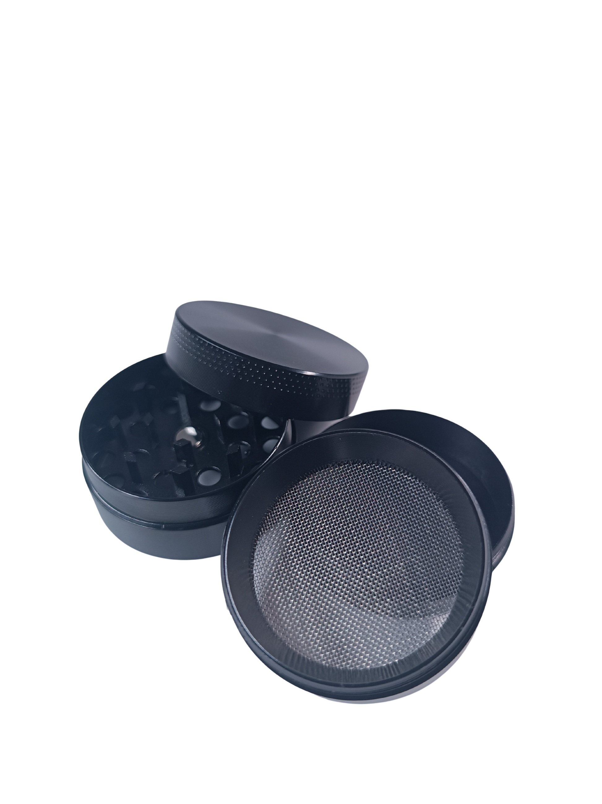 Grinder en métal noir pensé pour les amateurs d’herbes, de CBD et de tabac. Avec ses 3 parties, sa grille de filtration et son récupérateur de pollen, il permet de broyer vos herbes facilement et de récupérer les résidus les plus fins.